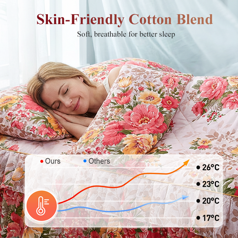 Ez a fejlett festési eljárás biztosítja, hogy az élénk virágminták még többszöri mosás után is megőrizzék ragyogó színüket, és nem fakulnak ki, így ágyneműje sokkal hosszabb ideig marad friss és újszerű.