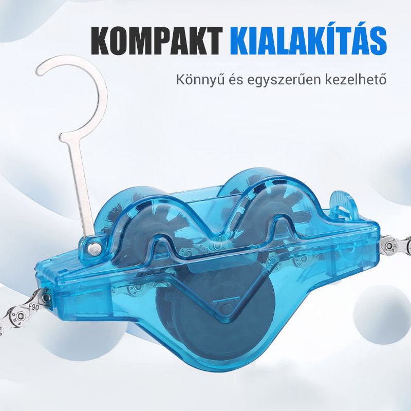 kerékpárláncokról a makacs zsírt, szennyeződéseket és lerakódásokat gyorsan és hatékonyan eltávolítja. A belső forgó kefék minden láncszemet megtisztítanak, javítva ezzel a lánc teljesítményét és élettartamát.