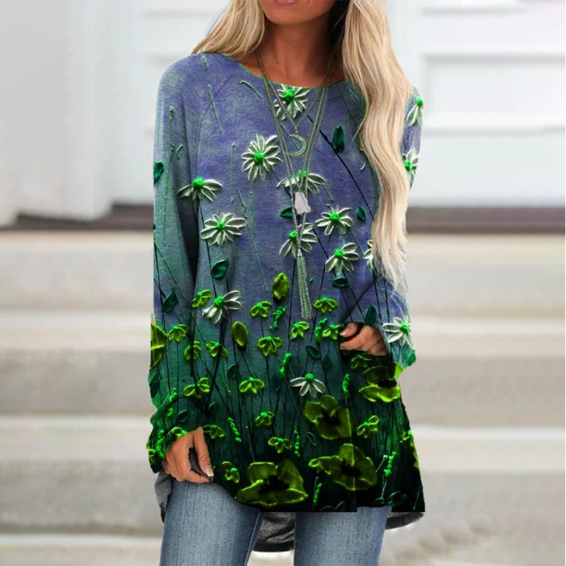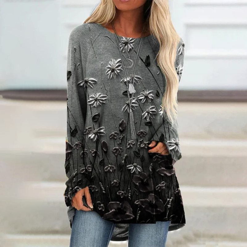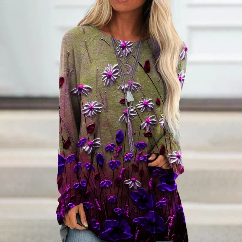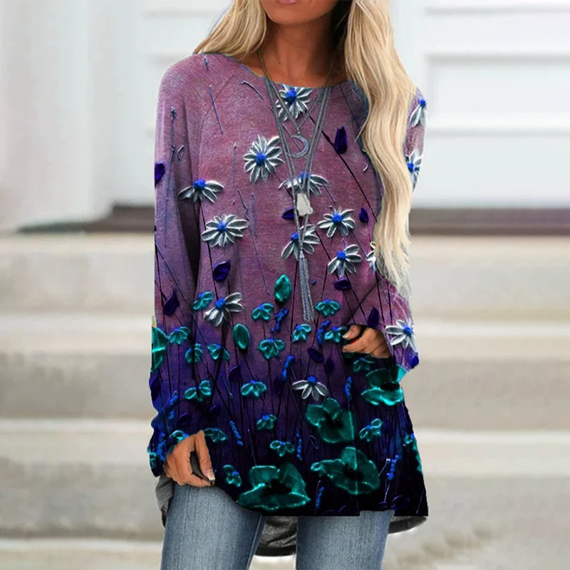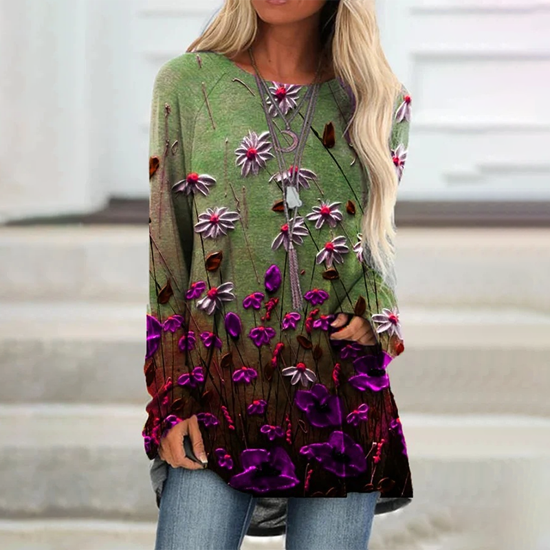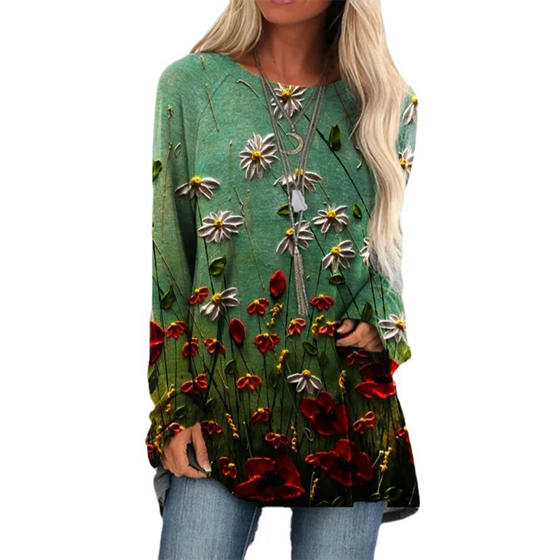 A gyönyörű, élénk nyomtatott minták merész, divatos hangulatot kölcsönöznek ennek a hosszú ujjú felsőnek, javítva az összképet és tökéletes választássá téve divatos nők számára.