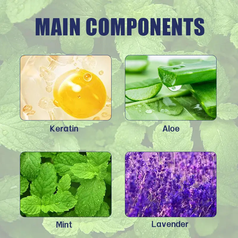 Fő összetevők: keratin, aloe vera, menta kivonat, levendulaolaj