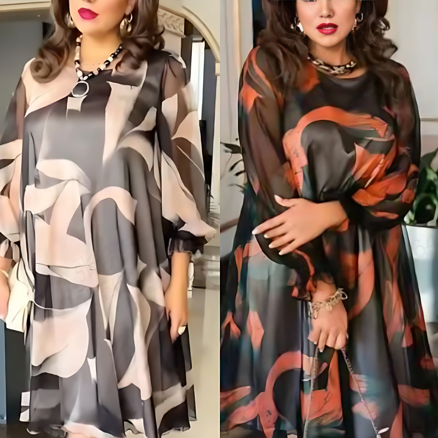 A csomag tartalmazza: 1* Kerek nyakĂș, hosszĂș ujjĂș, nyomtatott, lebegĆ ruha