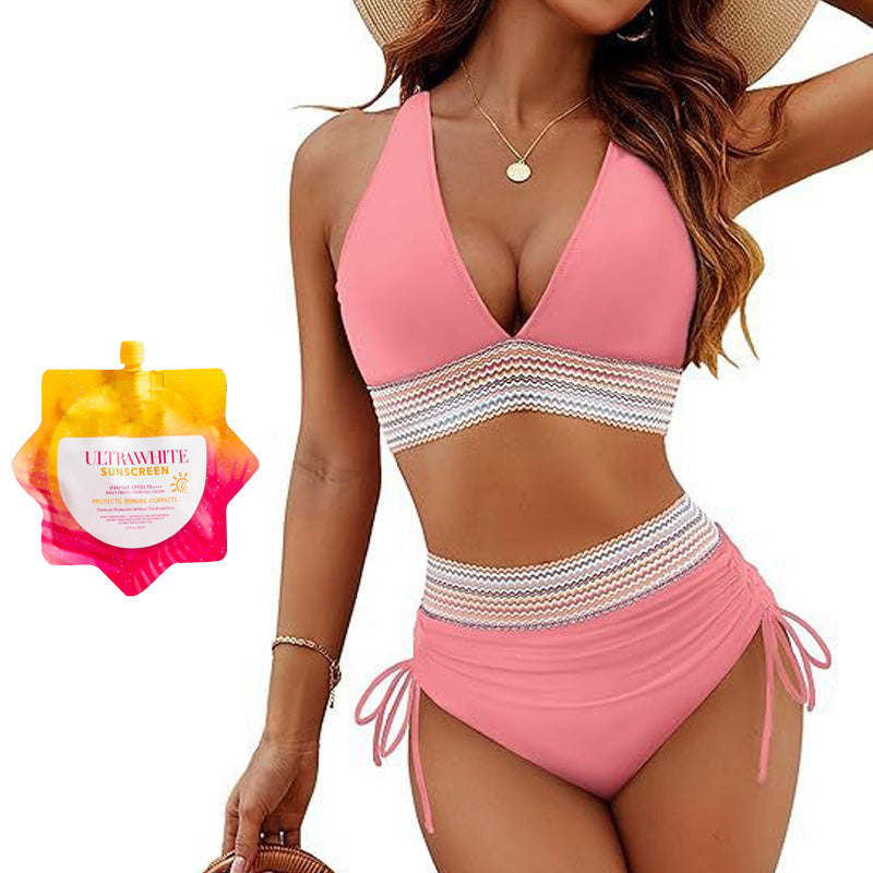 🔥👙Időben korlátozott napvédő kombinált ajánlat👙 Magas derekú, hasat formázó, színben passzoló bikiniszett