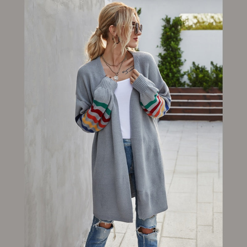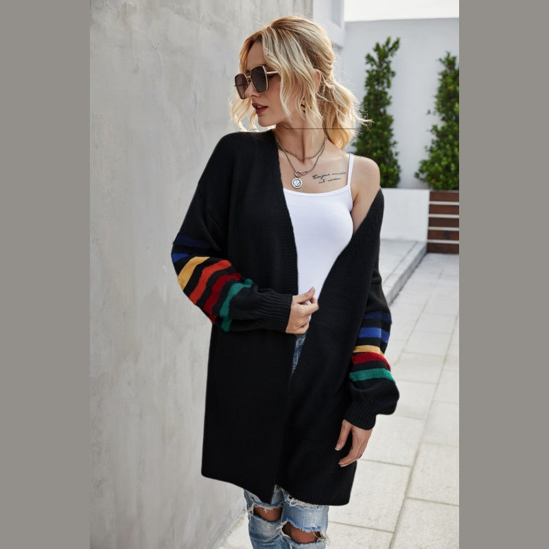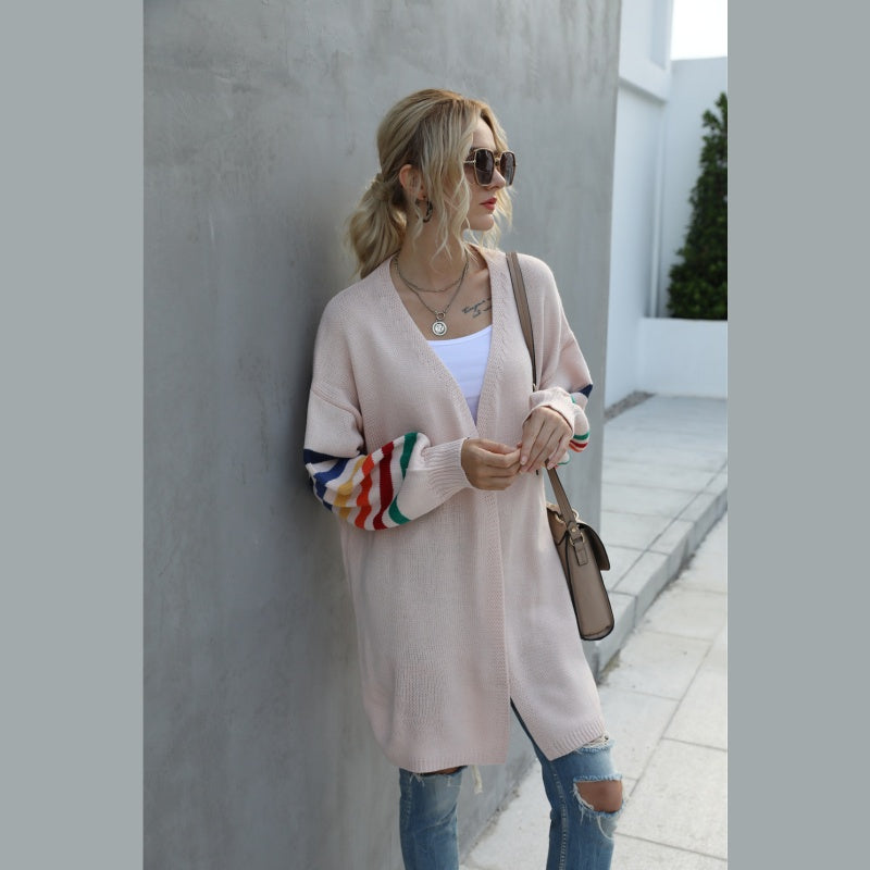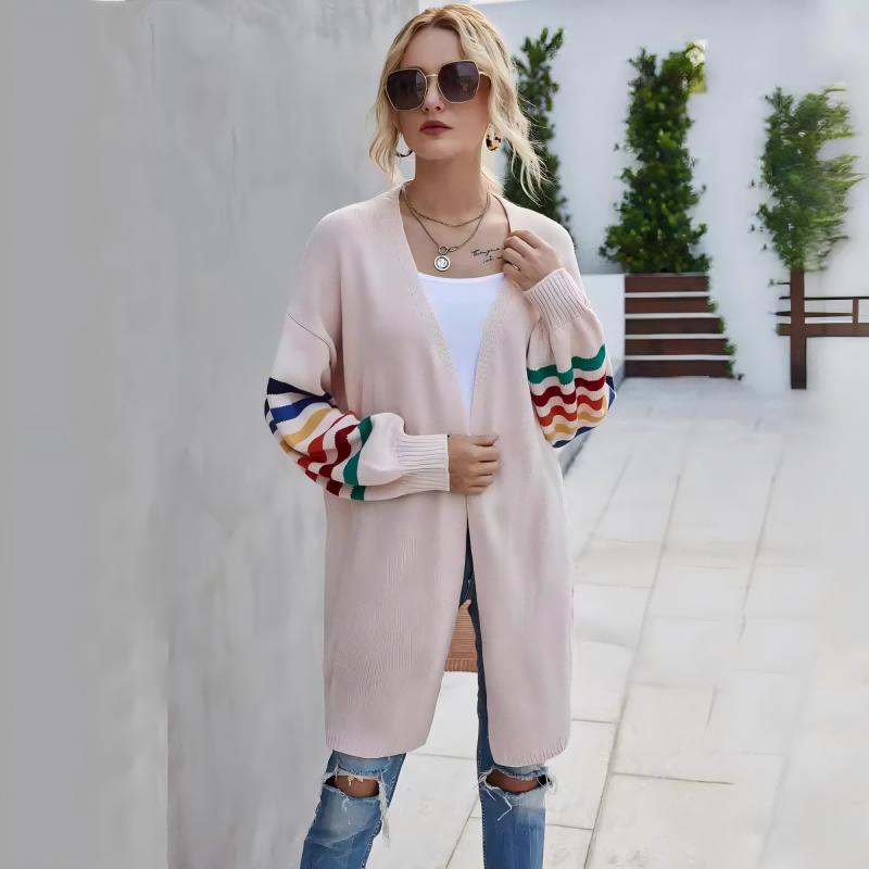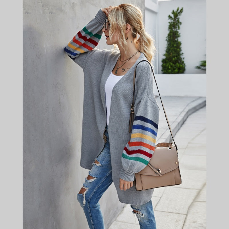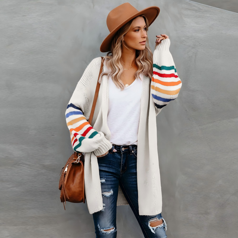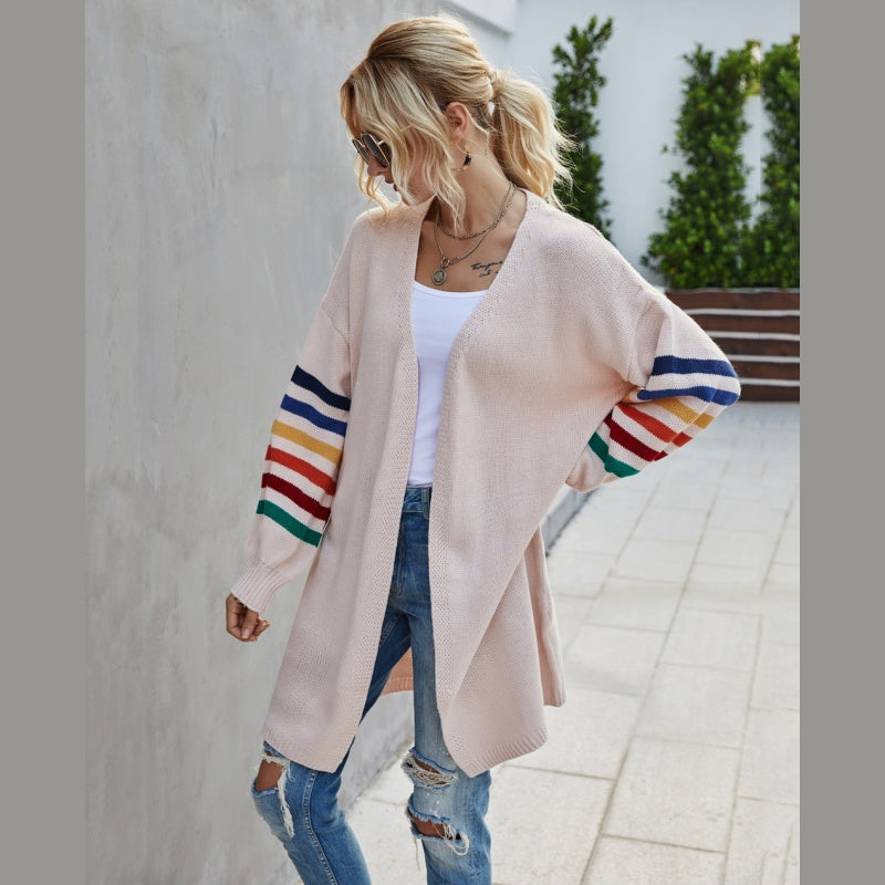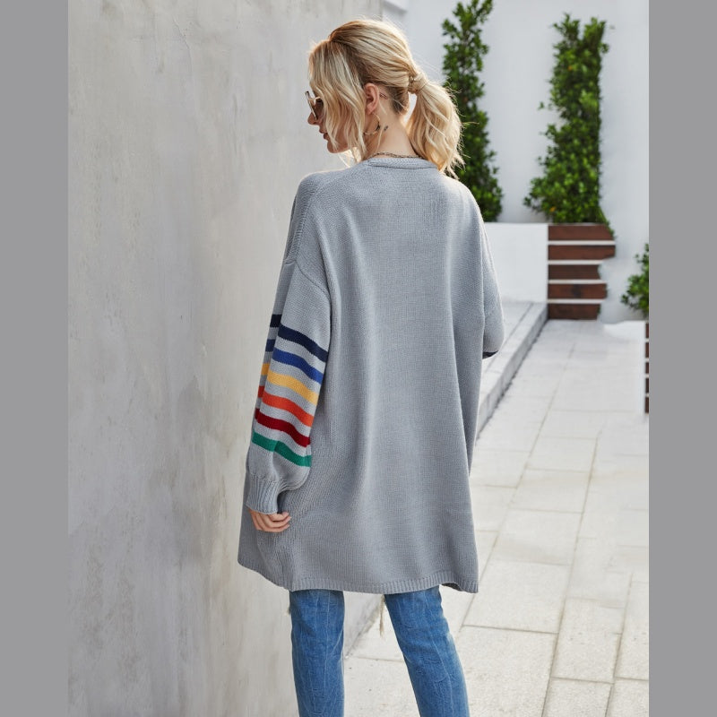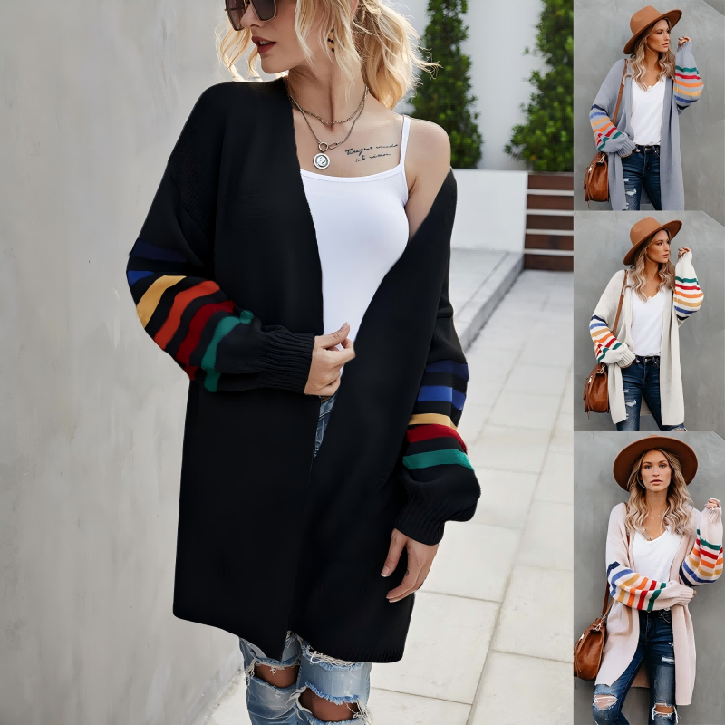 1 * Sokoldalú, színes csíkos ujjas pulóverkabát