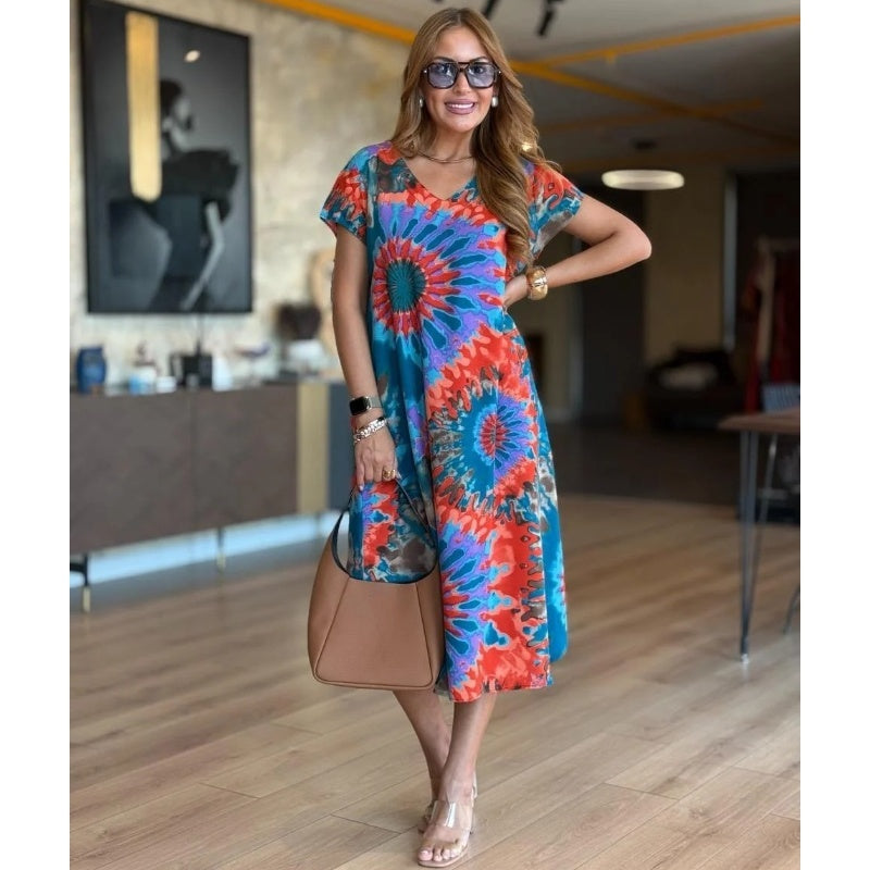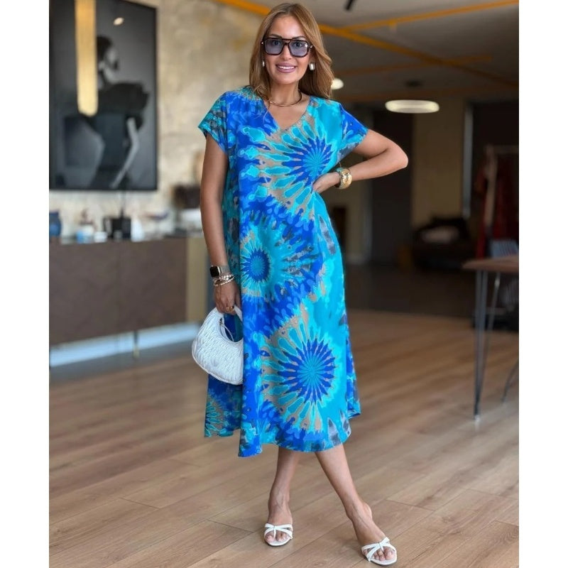 A csomag tartalma: 1*NĆi alkalmi V-nyakĂș nyomtatott Maxi ruha