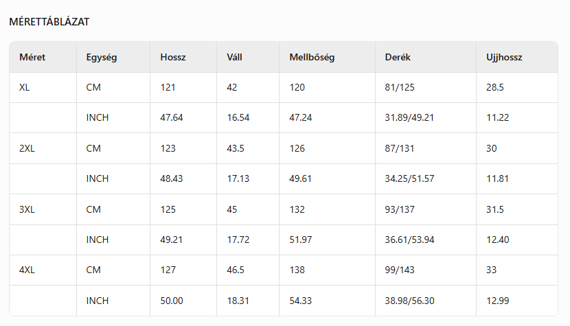 A megrendelés előtt kérjük, ellenőrizze a mérettáblázatot, hogy a legjobb illeszkedést biztosítsa.