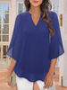 Laza, sifon anyagú, V-kivágású póló, amelyet a kényelem és a stílus jegyében terveztek.